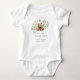 Isto podemos esperar muito tempo pelo anúncio de gravidez que o fato de bebê da Coleção Hannah é perfeito para um chá de fraldas no quintal e para fotos de um anúncio de bebê. Este fofo design com um tema animal neutro em relação ao gênero apresenta um bebê urso com espécimes do gênero Bombus spp., flores brancas e verde-verão. Personalize seu traje de bebê com o primeiro ou sobrenome do bebê e a data de vencimento.