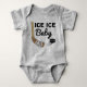 Roupa para bebês de hóquei em gelo. Este design de hóquei tem um bastão de hóquei e um disco e declara "Ice Bebê".