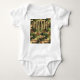 Este macacão-bebê é unisexo e tem um impressão de fadiga do Exército com as palavras "AMMO Roupa" em grandes ombros exibe uma fonte impressão com letras escuras no estilo e tema Roupa AMMO. Este fato é um ajustado padrão com etiqueta de rasgão fácil, além de um fecho fácil de três estalos e um fecho de agulha dupla em todas as aberturas.
