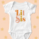 Um body no estilo retrô 'irmãzinha' para sua bebê. Uma ótima maneira de fazer um anúncio de bebê! Camisa de 'Irmã Mais Velha' disponível para combinar.