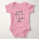 Incomum, o traje de bebê na moda, cristão, com algumas das descrições populares do Senhor JESUS mostradas em palavras cruzadas em tipografia negra ousada. Ao fundo, o Nome de Jesus é repetido três vezes em uma letra branca de serifa. Isso daria um presente excelente para bebês milagrosos, aniversários, Natal, e para qualquer pai que ama as seguintes citações inspiradoras baseadas na Escritura da Bíblia: Deus fará um caminho no deserto; Deus sempre mantém Suas promessas; Jesus é a Luz do Mundo, e Deus é Um que trabalha milagres. Outras cores disponíveis. Escolha entre uma ampla seleção de roupas de bebê inspiradoras, cristãs, baseadas na fé, desenhadas por Designs Bereanos.