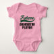 Bebê do jogador do Badminton (futuro) ou camisa infantil de t com um design futuro colorido do jogador do badminton.