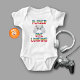 Este "Traje de Bebê de Dia dos Pais Player One" é uma roupa perfeita para combinar com nossa "Camiseta Masculina Dia dos Pais Mestre dos Games". Personalize como desejar.