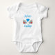 Celebrar o nascimento do bebê de um amigo com este belo traje branco com os textos personalizáveis Julian [corações] / ama Pai, em letras azuis-celestiais, e com dois buquês idênticos de flores (rosas, peonias, petúnias, pequenas flores de hydrangea, flores silvestres, etc.), adequados para bebês que são metade de irmãos gêmeos ou irmãos. Certifique-se de personalizar o nome Julian. Você também pode mudar o Pai para outra coisa, se quiser (por exemplo, Mamãe ou vovô).