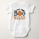 O Esquadrão Boo! Este terno de bebê do Halloween personalizável apresenta uma inscrição assustadora com morcegos, abóbora e sotaques de aranha. Personalize adicionando seus detalhes. Este fato personalizado de bebê é perfeito como presente de Halloween. Itens correspondentes estão disponíveis.