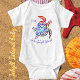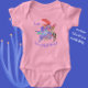 Este macacão colorido de tartaruga marinha tem um espaço reservado para o nome da criança. Abaixo do desenho fofo há uma inscrição que diz: ama a Ilha Jekyll.