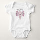 Ilustração adorável de axolote rosa com um espaço acima do desenho para personalizar o nome do bebê. Este body de bebê está disponível em várias cores diferentes.