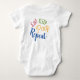 Este body de bebê fofo apresenta texto colorido na frente e atrás que diz, “Comer, Dormir, Cocô, Repetir”. Modifique o texto e as cores para criar um presente divertido e unissex para o chá de bebê para familiares, amigos ou colegas de trabalho.