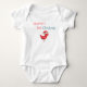 Body muito fofo e neutro para o primeiro Natal do bebê. Você pode personalizar o texto com suas próprias informações. A imagem é uma ilustração de um pássaro vermelho com um chapéu de Natal vermelho. Ótimo body para meninas ou meninos. Ilustrado e desenhado por Patricia Alvarez.