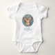 Body para bebê do primeiro Natal do bebê veado fofo. Veado fofo em fundo azul de inverno. Personalize o babador com o nome do seu bebê e o ano de nascimento.