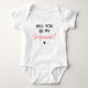 Peça aos que você deseja ser padrinhos do seu filho com este body de bebê super fofo. Faça seu bebê usar isso e use para fazer a pergunta "Você será meus padrinhos" em uma combinação de rosa e preto!