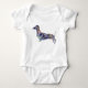 Mandala Dog, Dachshund watercolor art em um terno de bebê Jersey, White
