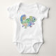 Bodysuit do bebê disponível em uma escala dos tamanhos, estilos e cores, caracterizando Marcel o camaleão em manchado.