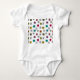 Este macacão-bebê tem um design moderno do século médio de labirintos dispersos, alguns com bolhas coloridas debaixo deles.