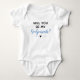 Peça aos que você deseja que sejam os padrinhos do seu menino com este body de bebê super fofo. Faça seu bebê usar isso e use para fazer a pergunta "Você será meus padrinhos" em uma combinação de azul e preto!