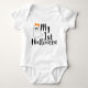 Body Meu 1º Halloween Bebê Menina Fantasma Fofa apresenta o texto "Meu 1º Halloween" em tipografia moderna de caligrafia manuscrita preta e acentuado com um fantasma de bebê menina fofo. Perfeito para a primeira festa ou celebração de Halloween do bebê. Criado por ©Evco Holidays www.zazzle.com/store/evcoholidays