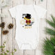 Body Bebê Menino Bonito Brilho Dourado Meu Primeiro Ano Novo apresenta o texto "Meu 1º Ano Novo (adicionar ano)" em roteiro moderno com brilho dourado acentuado com estrelas, fogos de artifício, cartola e gravata borboleta xadrez vermelha. Evco Holidays www.zazzle.com/store/evcoholidays