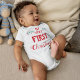 Ele diz "Meu primeiro Natal" em uma fonte moderna vermelha.