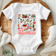 Meu Primeiro Natal Imagens Retrô Lindas e Divertidas Body Infantil Menina Menino Body apresenta o texto "Meu 1º Natal" em tipografia moderna com itens fofos, como um caminhão com árvore, camiseta feia, enfeites, presentes, meias, azevinho, árvore de Natal e decorações. Presente de Natal perfeito para menina ou menino. Criado por Evco Studio www.zazzle.com/store/evcostudio