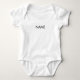 Texto preto personalizável, body de bebê branco. Disponível em muitas cores.