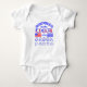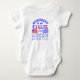 A roupa de bebê mostra as Bandeiras dos Estados Unidos da América e a Grécia. Leituras, "Montadas nos EUA usando peças gregas". Bebê vestido para reuniões familiares gregas, festivais e comemorações do Dia Oxi. Compartilhe suas heranças com um pouco de humor.
