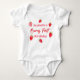 Este é um macacão de morango Primeiro Aniversário Vermelho e Bebê Rosa.