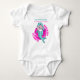 Adicione um nome para personalizar esta bonitinha cor-de-rosa, presente de roupas de bebê neutra em gênero, com um tubarão vestido de golfinho e as palavras "não seja enganado pelo quão fofo eu pareço"! Perfeito para o novo querido que te mantém acordado à noite! Adorável bebê novo, presente de chá de fraldas.