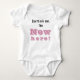Recursos de design totalmente personalizáveis texto, "Não me pergunte. Eu sou" em impressão preta. As palavras, "Nova Aqui!" são exibidas em uma fonte grande e rosa. Todo o texto é personalizável. Projetado como parte da coleção de camisas para Bebês/Toddlers.