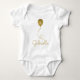 Um traje de bebê perfeito para uma festa de aniversário ou foto. Este design apresenta um balão de ouro falso de solteiro, com a idade da criança (definida em 1, mas pode ser personalizada em qualquer idade), personalizado ainda mais com um nome na fonte moderna do script em ouro falso.