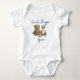 Nossa camiseta de uma peça para recém-nascido com tema de beisebol Nosso Pequeno Rebatedor. Adicione o nome do seu filho na área de personalização.