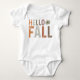Este design do outono dá as boas-vindas à estação do outono com a frase "Olá outono". As palavras são dispostas em um layout simples, mas visualmente atraente, com "Olá" colocado acima de "Queda". Cada letra da frase é apresentada em uma fonte arrojada, achatada com uma textura levemente amaldiçoada, dando a ela um olhar rústico e metido que complementa o tema do outono.