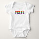 Este design colorido apresenta a palavra Pride criado com um arco-íris.