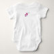 Este simples design de "Garota Pai", em rosa e roxo, acentuado por um pacificador rosa. Há também um minipacificador cor-de-rosa na parte de trás do meio entre as omoplatas. Esta é uma maneira perfeita de o Pai estragar a sua pequena princesa.