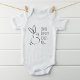 Este bodysuit fofo apresenta "algum coelho me ama" em tipografia moderna condensada com gráfico de coelho em contorno. Faz um presente perfeito para chá de bebê, recém-nascido ou Páscoa.