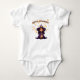 Bodysuit de bebê doce com uma adorável pequena feiticeira em roupas roxas com estrelas douradas.