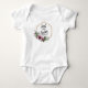 Este body precioso para uma menina bebê tem uma armação dupla de arame dourado com um buquê floral de margaridas roxas pintadas em aquarela. Dentro da tipografia diz "pequena MENINA Sapeca" em uma fonte cursiva e regular. Você é bem-vindo para mudar as fontes se desejar, indo em "personalizar este modelo" e depois "customizar ainda mais".