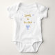 Celebrate your baby's first Festival of Lights with this sweet personalized Hanukkah bodysuit. Featuring a classic menorah design, hanging stars, and space to customize with your child’s name, this soft cotton bodysuit is perfect for commemorating this special milestone. The elegant gold and blue text stands out beautifully on white, making it a meaningful outfit for family gatherings, holiday photos, or gift-giving. Available in multiple sizes and easy to personalize, it’s a keepsake you’ll cherish for years to come.