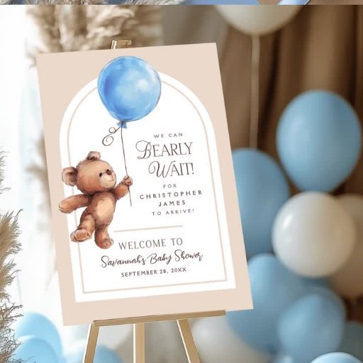 We Can Bearly Wait Elegant Brown Blue Baby ShowerCriado por Kimberly Jones