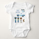 Dê a seu policial ou policial seu próprio corpo de policial personalizado! A camisa tem dois policiais — um menino e um menina. Ambos estão vestindo óculos de sol, chapéus, e crachás, e um está algemado. Há um prisioneiro ao lado dos policiais, bem como um cão de polícia e um carro de polícia. Levar a cena do avião é um helicóptero policial. Personalize a camisa com o nome de seu filho ou filha, precedido pelo texto Chefe ou pelo texto de sua escolha. Este fato faz um chá de fraldas personalizado excelente ou presente de feriado!