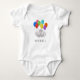 Cartoonaria engraçada Octopus sorri e segura oito balões coloridos em cada tentáculo. Belo e fofo design para a roupa de bebê. Você pode personalizar facilmente o nome do bebê usando a ferramenta online Zazzle.