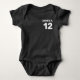 Bonita e personalizada Baby One-Piece negra para seu bebê criança ou menina. Adequado também para esporte de equipe e eventos! Design aparece na frente e atrás. Nomes e números podem ser alterados para corresponder às suas necessidades. (Se você quiser ter apenas o nome para aparecer, você pode fazer a caixa de campo numérico vazia) Faça check-out de outras designs em nossa loja! Se precisar de ajuda para personalizar este produto, por favor envie-me uma mensagem utilizando o botão abaixo e ficarei muito satisfeito por ajudá-lo.
