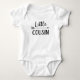 Roupas personalizadas com impressão personalizada com gráfico "Little Cousin" em fontes modernas e modernas com um design de seta boho. Perfeito para uma foto de anúncio de gravidez ou camisas de primos correspondentes quando o novo bebê chegar! Use as ferramentas de design para editar as cores ou adicionar seu próprio texto e fotos para criar um design de camiseta personalizado único. Escolha entre uma grande variedade de camisetas, body para bebês, tanques e estilos de moletom para homens, mulheres, crianças, crianças e bebês. Confira nossa loja para outros designs correspondentes para toda a família.