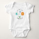 Traje de bebê decorado com a primeira viagem em volta do tema do Sol para a festa de primeiro aniversario de um menino. Isto coordena-se com o outro espaço sideral temido decoração para festas celestiais de galáxias. Veja a coleção para ver todos os itens de coordenação. Estes podem ser editados para adicionar a sua mensagem ou nome personalizado.