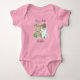 Bebê menina desenhada à mão sentada ao lado do Coelho da Páscoa. Camisa do Primeiro Páscoa do Bebê.