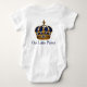 Meninos príncipe camisas com bonito coroa azul real e joia dourada. Você pode adicionar o texto de sua escolha para personalizar esta adorável camisa de bebê príncipe. Há também uma coroa azul e dourada real no verso onde você pode adicionar texto, ou você pode removê-lo se preferir.