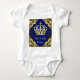 Meninos príncipe camisas com bonito coroa azul real e joia dourada em um rico fundo azul real e espiral dourado. Você pode adicionar o texto de sua escolha para personalizar esta adorável camisa de bebê príncipe. Há também uma coroa no verso onde você pode adicionar texto ou removê-lo se preferir.