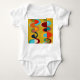 Este body de bebê tem um design moderno de meados do século de meio-ovais em uma paleta de cores retrô. Colorido, ousado, divertido! Procure o bico de silicone, babador e travesseiro combinando.