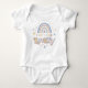 Esta cor editável com o arco-íris retrô não é ela adorável tipografia bebê roupa design é adorável para qualquer menina. A design apresenta tons de pínus poeirentos, amarelos e azuis silenciosos e faria um presente adorável para uma mãe esperançosa. É editável a cores, então basta clicar em "editar usando a ferramenta design" para fazer com que ela seja sua própria combinação de cores! Os motivos incluem um arco-íris fofo com corações, estrelas e um olhar retrô. Você também pode personalizá-lo com seu texto personalizado clicando em "editar usando a ferramenta design". Faz um presente de chá de fraldas único e personalizado, ou dar as boas-vindas ao novo bebê!