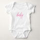 O presente perfeito de chá de fraldas para o doce bebê a caminho. Este macacão super macio tem uma palavra de estilo moderno, mas simples, escrita à mão 'baby' no fazer dianteiro que é perfeita para qualquer gênero. As roupas de uma peça de bebê são uma peça indispensável que você sabe que sempre será útil!