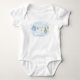 Este coelho na corda de roupa vestido de azul com certeza vai ficar fofo no seu pequeno! Edite o texto facilmente.